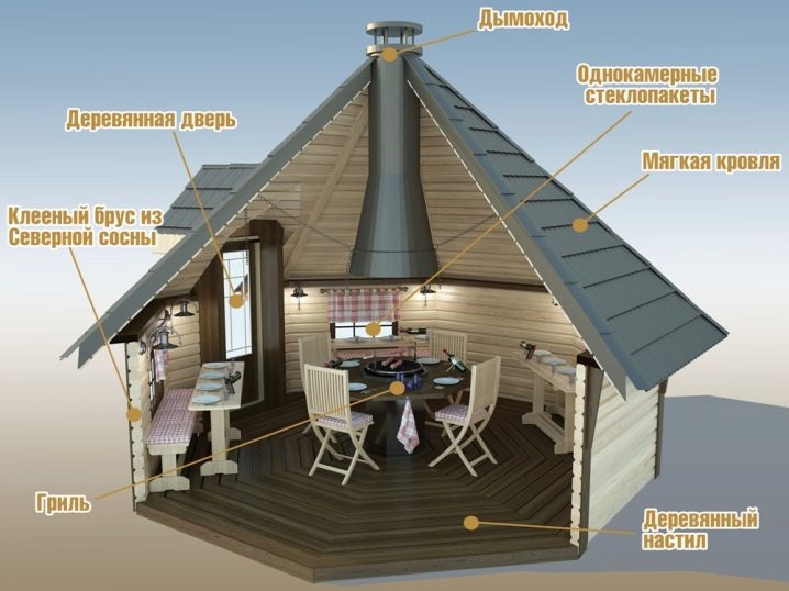 Malgré les technologies modernes et les logements bien équipés, chaque personne manque d'unité avec la nature. Par conséquent, la plupart des citadins tentent de passer leur temps libre en dehors de la métropole, en organisant des réunions de pays. Pour ce faire, beaucoup construisent un grill sur leur terrain, ce qui en fait un lieu idéal pour passer des vacances agréables dans le cercle de famille et rencontrer des amis. En raison de la conception unique, dans un tel bâtiment, vous pouvez cuire tous les aliments sur un feu ouvert quelles que soient les conditions météorologiques, car le bâtiment est construit et protège de manière fiable le reste du vent, des fortes pluies et même des blizzards.