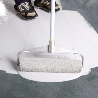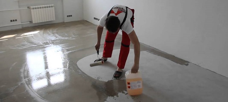 - Lorsque la pose ultérieure d'une dalle est prévue, il convient d'utiliser un apprêt qui fournira la capacité d'absorption minimale de la base. Cela est nécessaire pour que la base ne prenne pas d'eau des adhésifs.
