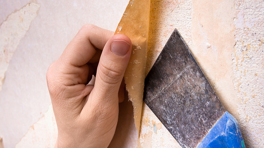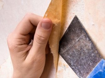 - Avant le processus de travail, il est nécessaire de traiter une surface après avoir enlevé le revêtement précédent. Enlevez le vieux papier peint, enlevez les restes de colle.