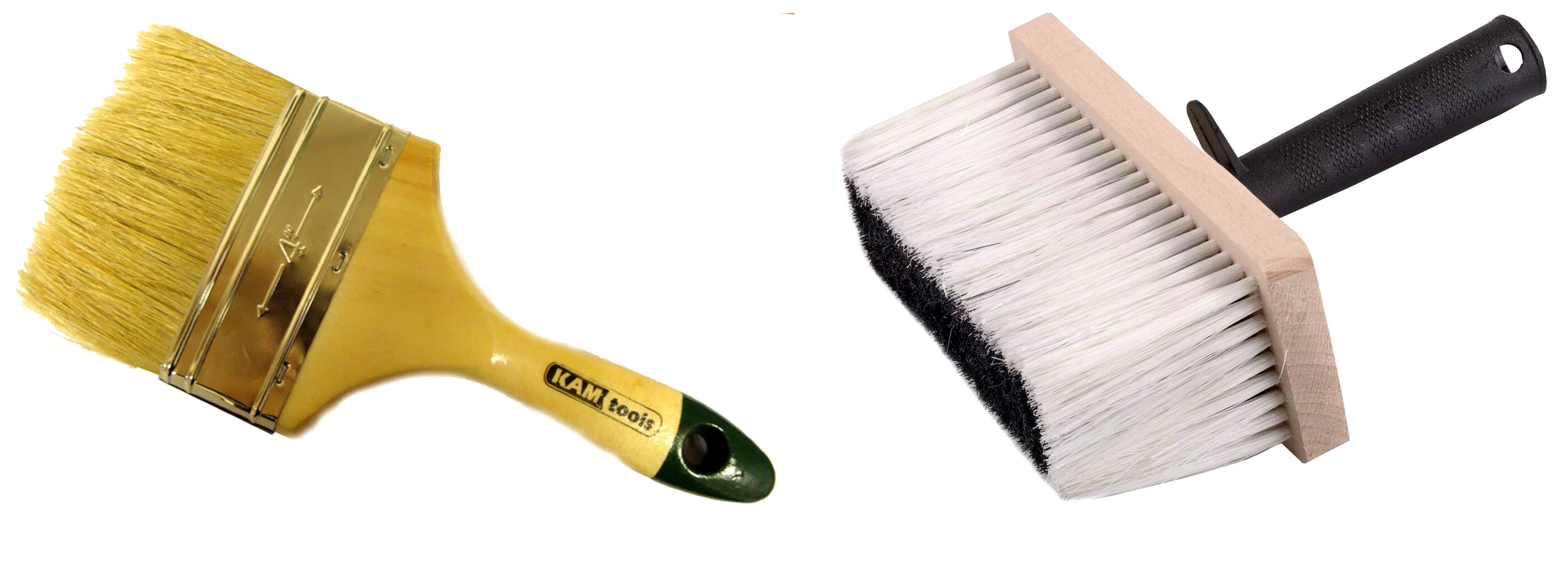 Il existe deux types de brosses: radiateur et plat. Le premier concerne l'application délicate de la composition autour de petits éléments. L'autre peut être utilisé pour le reste du mur.