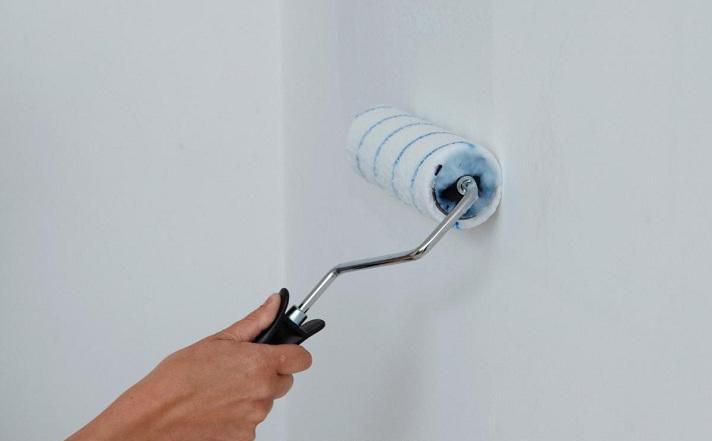 - À l'aide d'une brosse, les angles sont traités à des endroits où le rouleau ne passe pas.