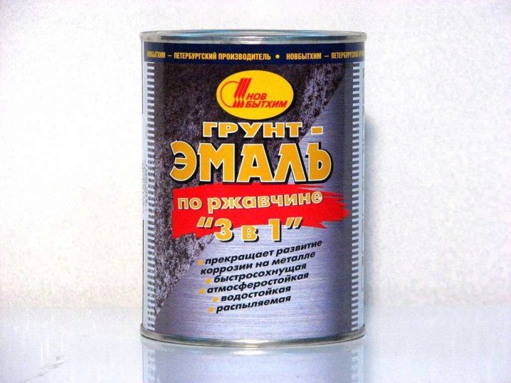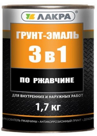Aujourd'hui, sur les étagères, vous pouvez trouver une bonne option - émail 3 en 1. De telles compositions fournissent un traitement rapide et n'auront pas besoin de prélever un apprêt secondaire et une composition de peinture. Pour un traitement de surface de haute qualité, il suffit d'appliquer 3 couches de cette composition, ce qui assurera la mise en œuvre d'un certain nombre de fonctions obligatoires. Les inconvénients d'un outil multifonctionnel sont une faible durée de vie anticorrosion d'un tel revêtement en raison de l'absence de traitement du matériau en plusieurs phases.