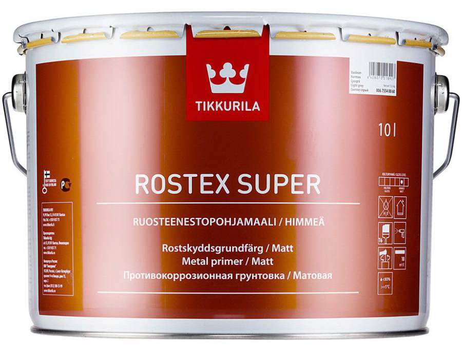 Tikkurila Offre aux acheteurs le composé anti-corrosion "Rostex Super", qui appartient à la classe des sols à séchage rapide pour les surfaces en acier, en aluminium et galvanisées. La composition ne contient pas de plomb, présente une résistance à la chaleur et une bonne résistance à l'usure.