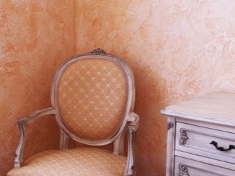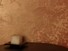 La texture douce de la buse lors du plâtrage définit l'effet d'un «manteau de fourrure». Les rouleaux de tissu décoratifs avec une texture broyée imitent la finition en marbre, pour imiter une pierre naturelle, ils utilisent un instrument avec une buse en cuir.