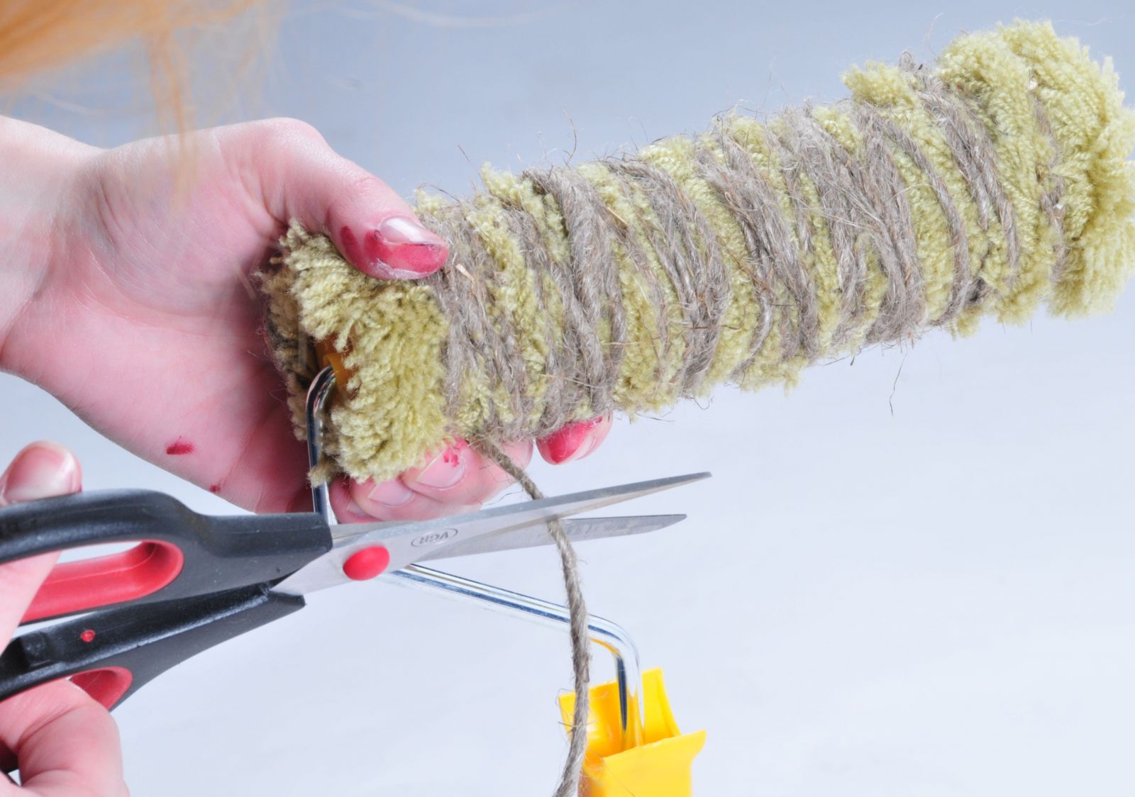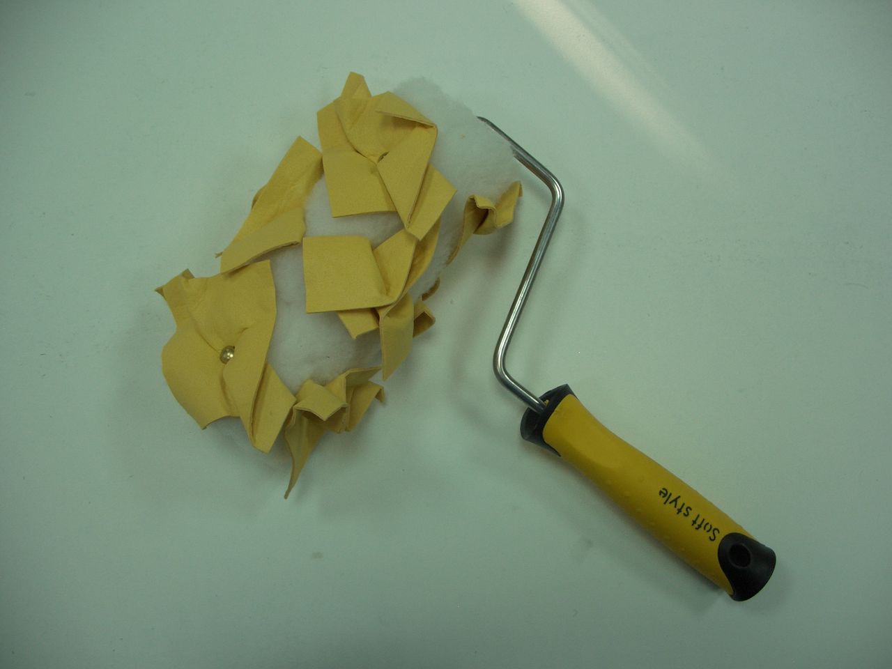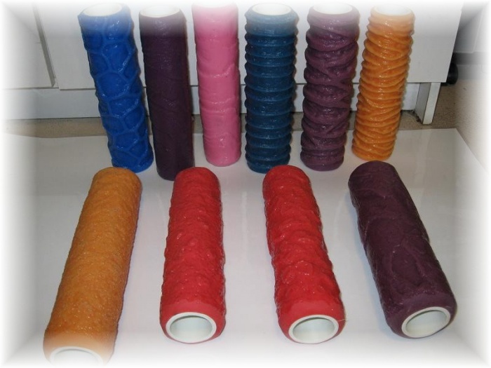 Pour améliorer les rouleaux en mousse ordinaires, vous pouvez utiliser de la ficelle ou des morceaux de caoutchouc mousse.En les plaçant en diagonale ou dans toute autre direction. Cette méthode aidera à créer un motif naturel, par exemple, en répétant la structure de l'écorce d'un arbre. Pour créer un ornement glacial le matin, vous devez utiliser un tissu froissé texturé (coton, lin).Le rouleau est enveloppé avec le matériau sélectionné, puis un tel outil de texture est utilisé pour décorer la surface.