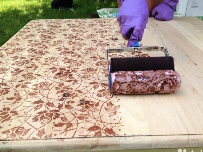 Les rouleaux en bois sont parfaits pour un décor de figure prononcé. Les outils à revêtement dur seront l'option la plus appropriée.Le coût d'un tel dispositif de peinture est plus élevé, mais cela est facilement compensé par la possibilité de son utilisation réutilisable, ainsi que par le respect de l'environnement.
