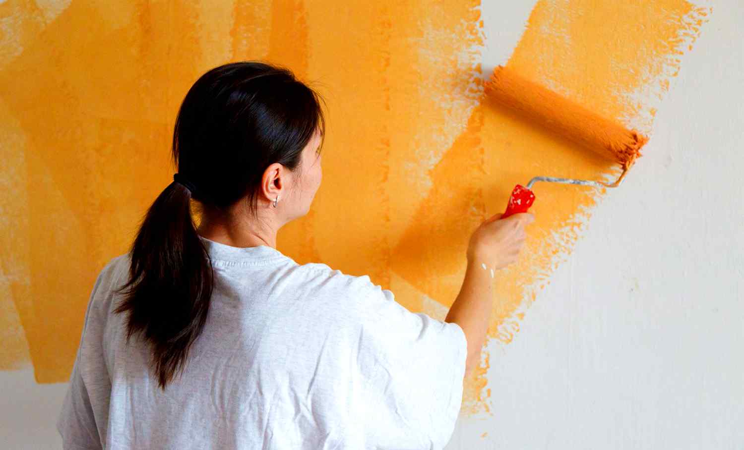 - Appliquez la peinture avec un rouleau pour peindre le mur entier du bas vers le haut et dans la direction opposée.