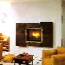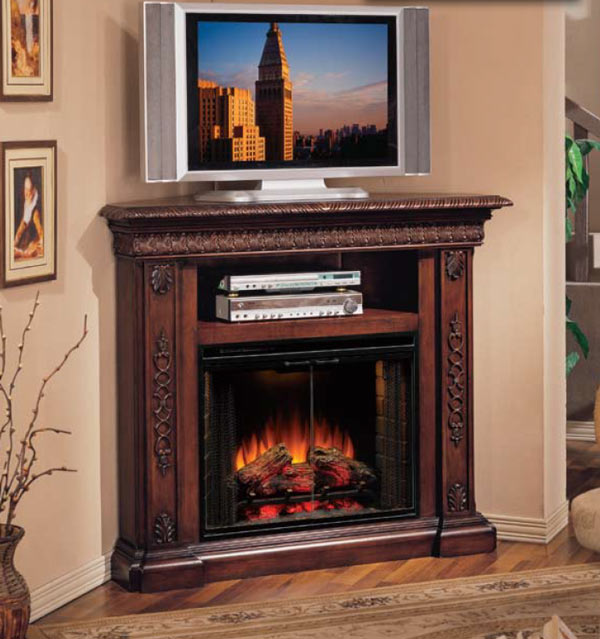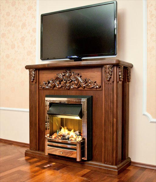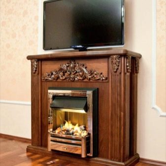 - Il existe des cheminées multimédias avec des tuyaux en cuivre. Sur ces portails, vous trouverez un support spécial pour un système de télévision ou multimédia. Un tel dispositif remplit la fonction décorative et joue le rôle de support sous les lecteurs, sous le téléviseur, le système de haut-parleurs. En raison de la hauteur commode du feu électrique, vous pouvez y placer un téléviseur ou le placer au-dessus de celui-ci.