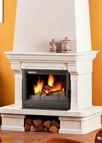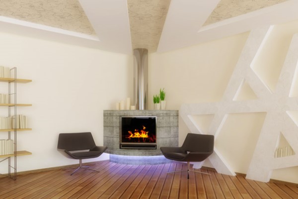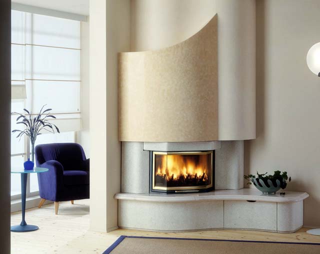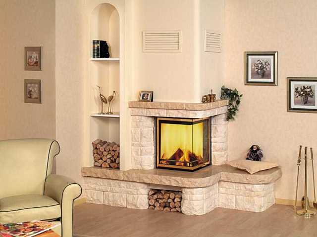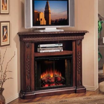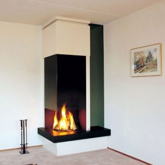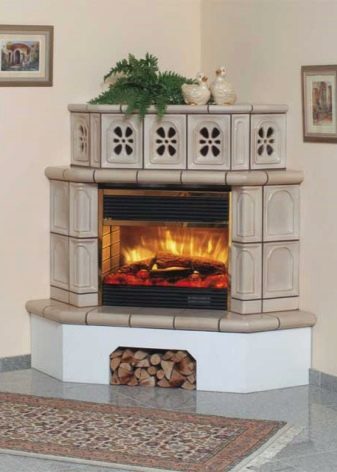 Les cheminées d'angle sont populaires dans les petits appartements. Ces mini-portails offrent toutes les options d'un foyer traditionnel. Le poêle d'angle décorera parfaitement le coin de votre pièce et apportera un brin d'exotisme et de charme à la pièce.