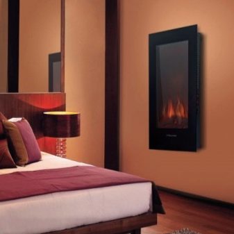 Si vous songez à équiper une chambre à coucher, faites attention aux cheminées montées. Dans cette pièce, un feu électrique peut avoir lieu au-dessus du lit ou dans un petit boudoir. Pour une petite pièce, un support de cheminée approprié. Placez un miroir ou une télévision dessus et gagnez de la place dans une petite pièce.