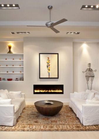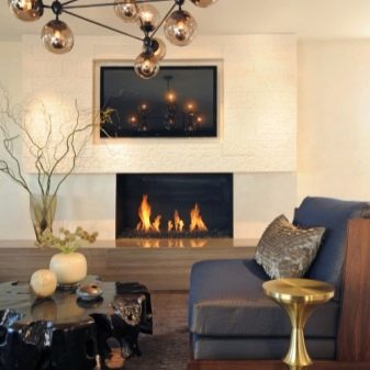 Si vous envisagez de faire un feu électrique dans le hall, il est déconseillé d'acheter des modèles intégrés dans le support de téléviseur. Si les deux appareils fonctionnent en même temps, vous ne pourrez pas vous concentrer sur une chose. Il est préférable de placer la cheminée dans le coin opposé afin de pouvoir profiter de la vue lorsque vous lisez un journal ou prenez une tasse de café. Dans la pièce, vous pouvez placer n’importe quelle cheminée en vous concentrant sur la zone et le design de la pièce.