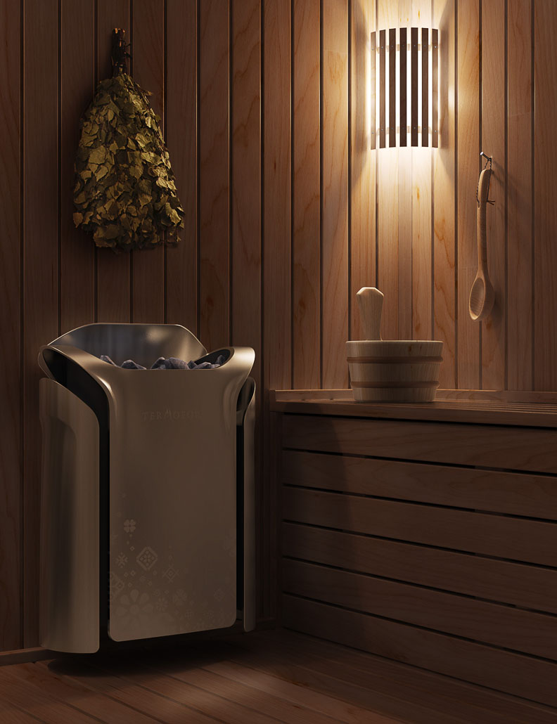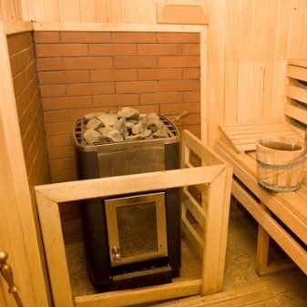 En règle générale, dans un sauna, un foyer électrique est placé à la porte, mais sa petite taille permet une installation n’importe où. Un garde-corps spécial est installé autour de l'appareil par mesure de sécurité incendie.