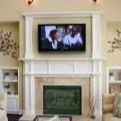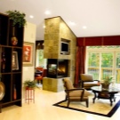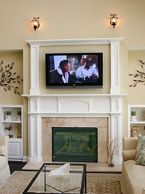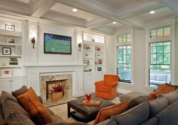 Il y a des cas où une télévision est suspendue au-dessus de la cheminée. En principe, c’est une bonne décision, car il ya toujours beaucoup d’espace au-dessus de la cheminée qui doit être rempli et au lieu de grandes images, une télévision est suspendue à cet endroit.Malheureusement, cette solution n’est pas toujours correcte ni pratique, puisqu'un travail simultané de la cheminée et de la télévision détourne l’attention l’un de l’autre, ce qui ne permet pas de se concentrer sur une chose. Quoi qu’il en soit, la cheminée, qu’elle soit réelle ou non, est un meuble autonome dans le salon et ne tolérera pas des concurrents aussi brillants que lui.