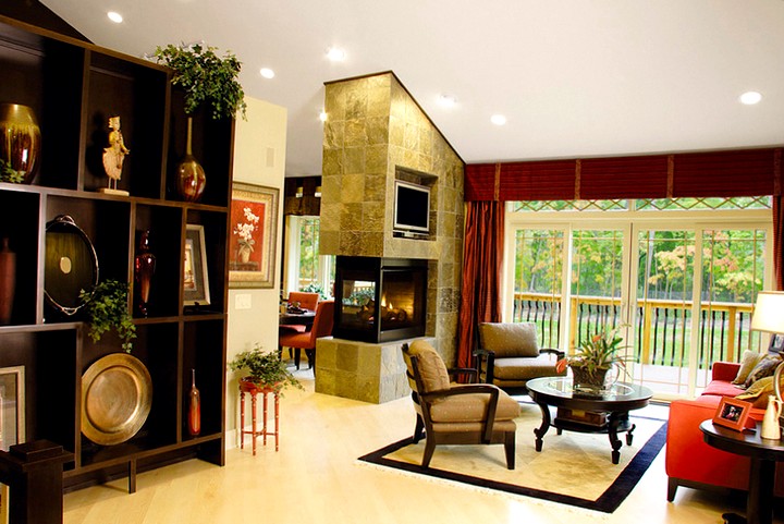 Bien sûr, le placement le plus courant des cheminées est le salon. Falshkaminy est très joli avec le décor de marbre, bois ou pierre. Ce meuble fait souvent office d'étagère ou de meuble, qui peut être décoré de statuettes, de montres et de cadres avec photos.