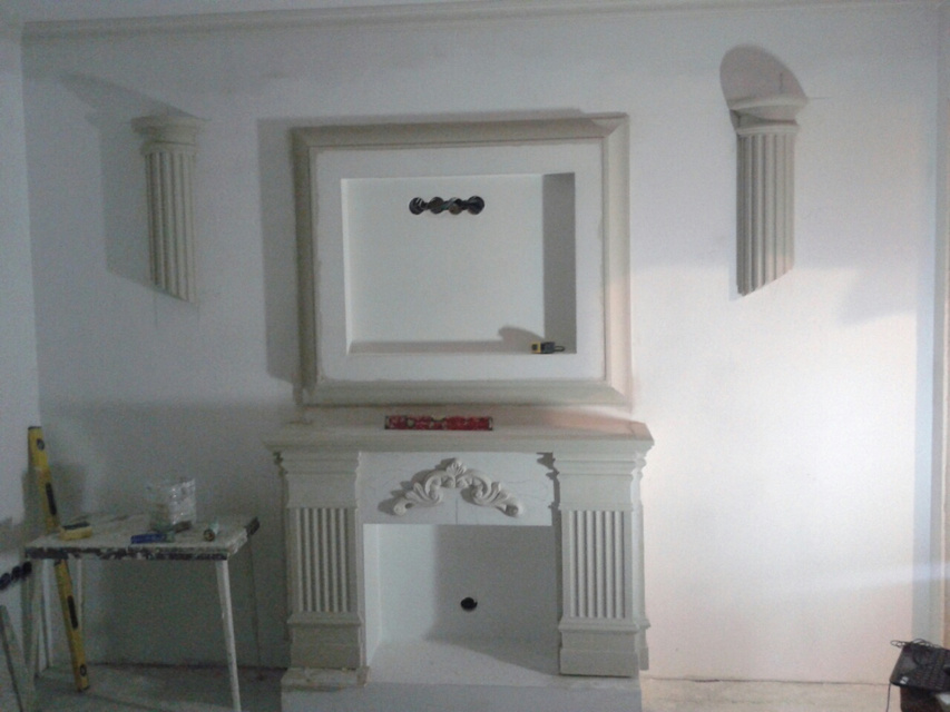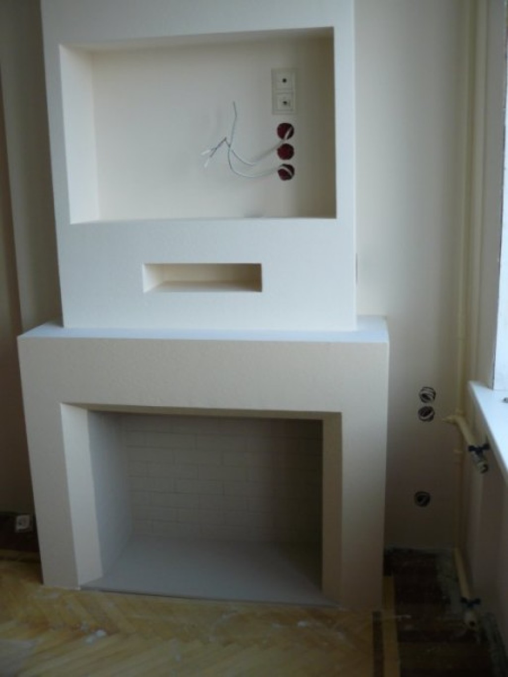 - Face aux cheminées.Les cloisons sèches servent souvent ici d'intermédiaire entre la surface chaude du cadre et le mur principal.