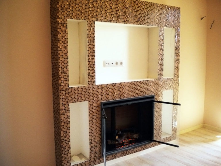 Pour ce faire, utilisez une colle spéciale résistante à la chaleur, avec laquelle des carreaux individuels sont fixés à la surface du foyer. Ainsi, en combinant ces deux matériaux, vous pourrez créer un très beau décor.