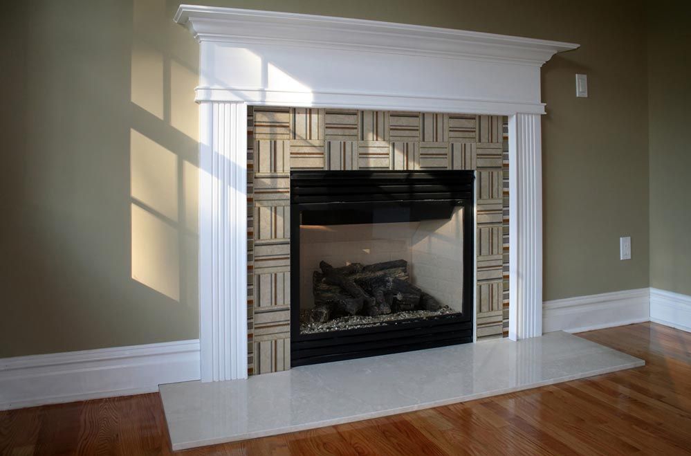 Les cadres de telles feuilles sont souvent situés dans des bâtiments résidentiels, ce qui nécessite une décoration supplémentaire.Lors de la finition du foyer, les cloisons sèches peuvent être recouvertes de matériaux décoratifs spéciaux, tels que des carreaux résistant au feu. La technologie de son application sur une telle surface n’est pratiquement pas différente du collage sur un autre matériau.