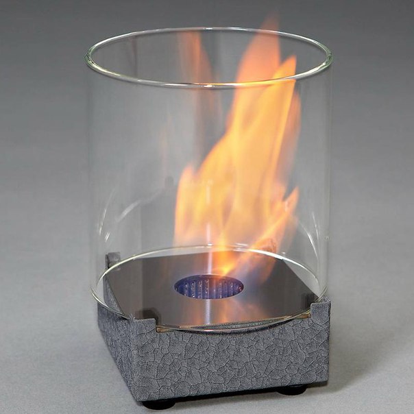 La partie principale de la cheminée de bureau est le brûleur, qui ressemble à une tasse en verre ordinaire. Cette pièce est uniquement en matériau réfractaire.