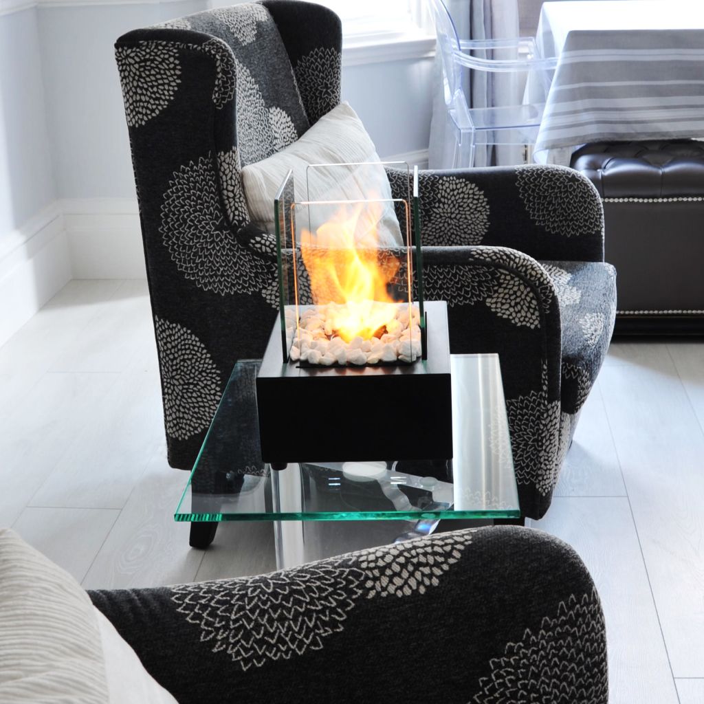 Une cheminée biologique, petite mais fonctionnelle, ira partout, que ce soit dans une salle de bain, une chambre romantique ou un bureau. La cheminée de table peut être installée sur la véranda ou simplement à l'air libre, car la flamme est protégée de manière fiable contre les rafales de vent à l'aide d'un écran en vitrocéramique.
