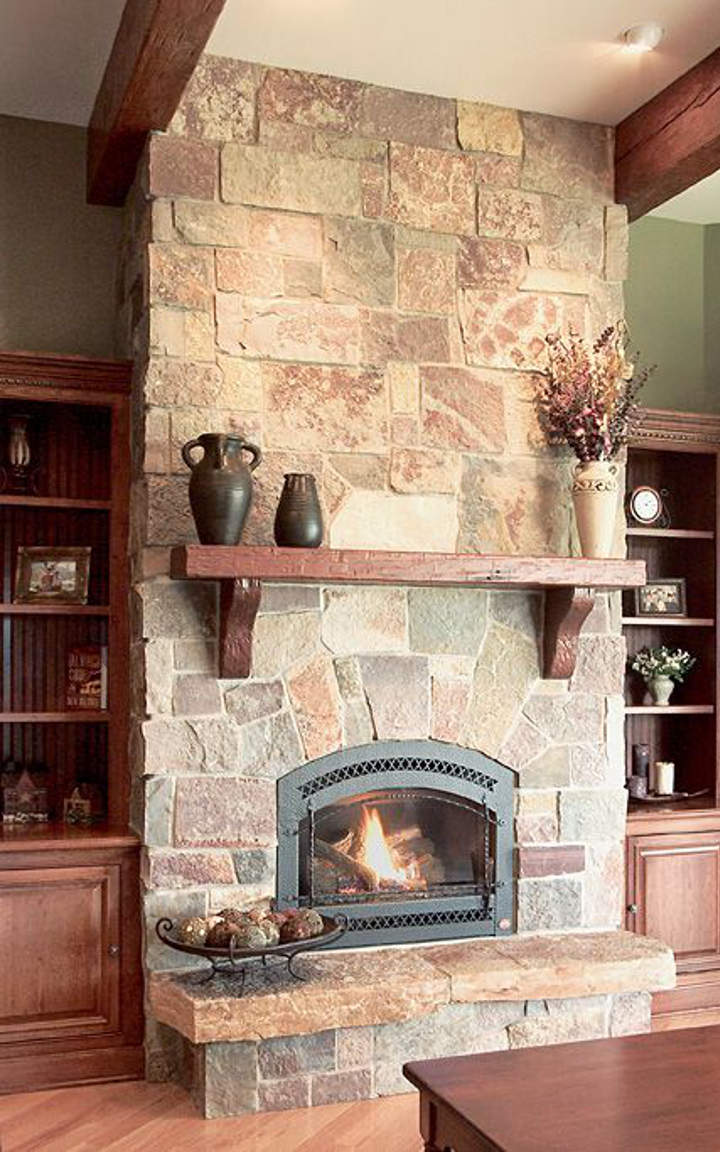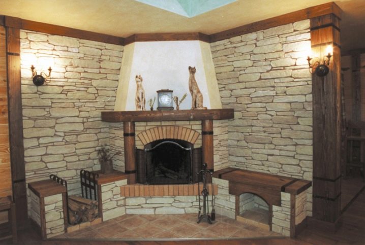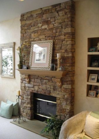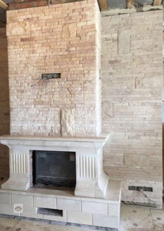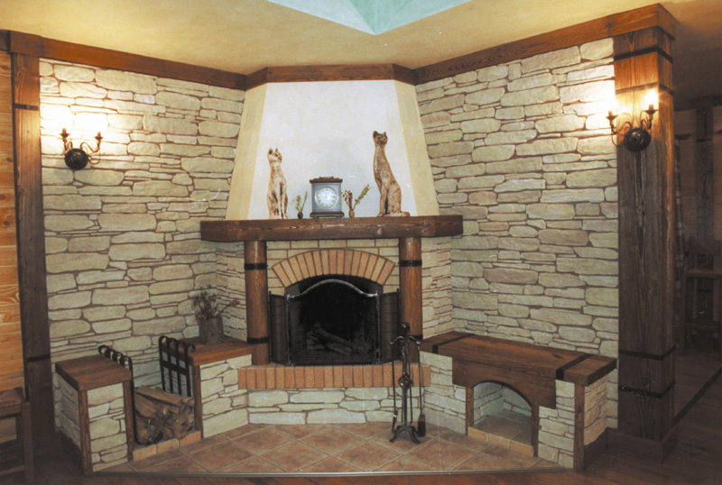 Le granit, le marbre, le grès, le quartzite, le calcaire, l’ardoise, le tuf, le galet et même les pavés sont utilisés comme pierres de parement décoratives pour la finition du foyer. Pour les options particulièrement luxueuses peuvent être utilisés et des pierres semi-précieuses - jaspe, onyx, jadéite, serpentine.