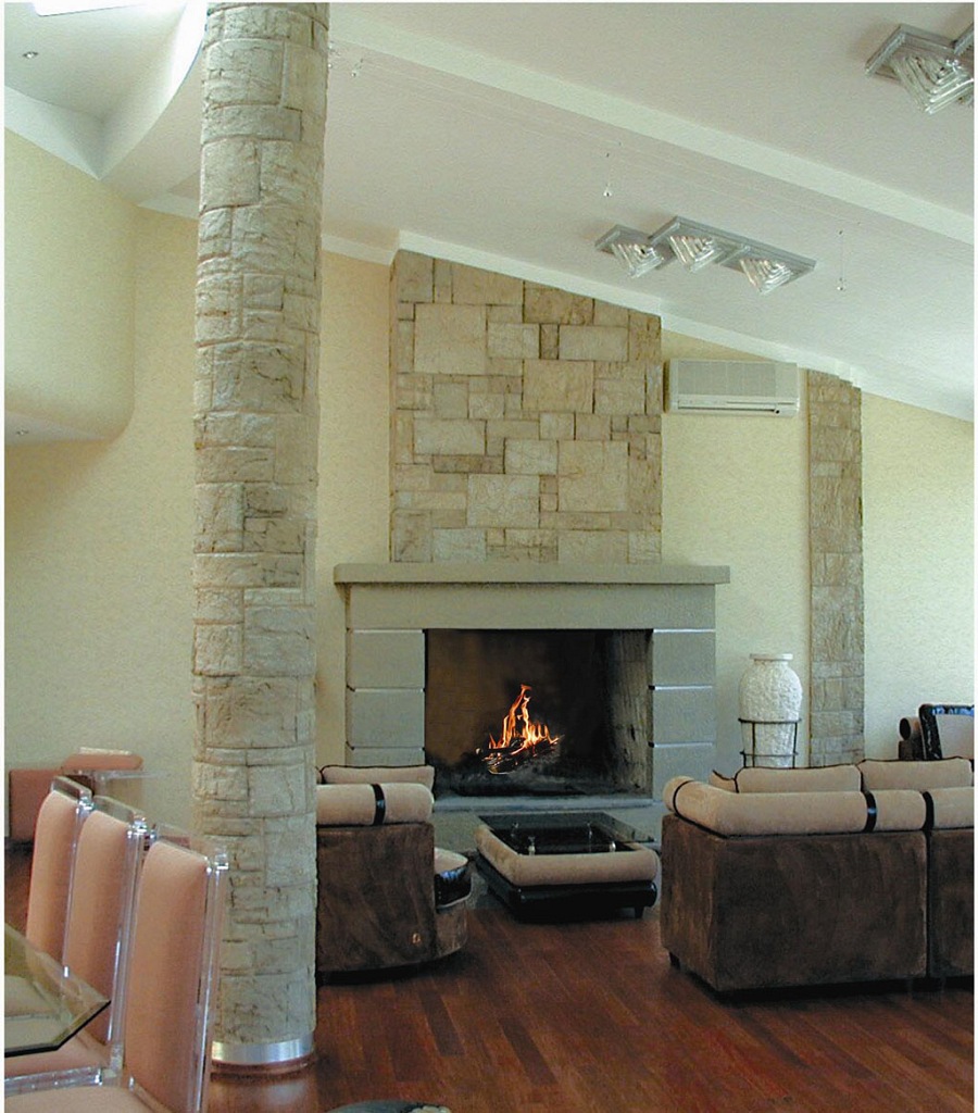 - Très bon poids L'utilisation de pierres naturelles pour la décoration nécessite une évaluation préliminaire du poids de la cheminée avec une telle décoration et de la capacité de la fondation à supporter un tel poids. De plus, le poids nécessite souvent des structures supplémentaires spéciales pour la fixation des pierres.
