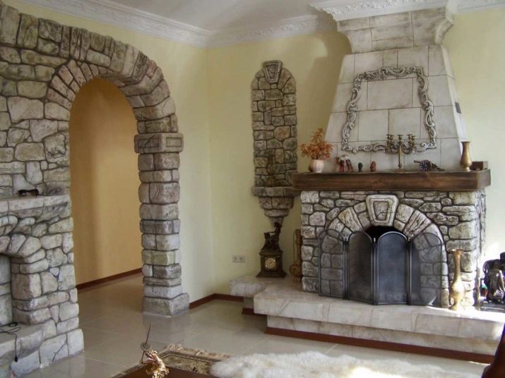 En tant qu'option simple et économique, vous pouvez utiliser une pierre à plâtre. C'est facile, ne surchargez pas la structure. Le traitement n'est pas difficile. Il est possible de créer diverses formes de telles pierres en créant vos propres dessins.