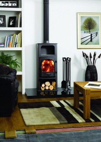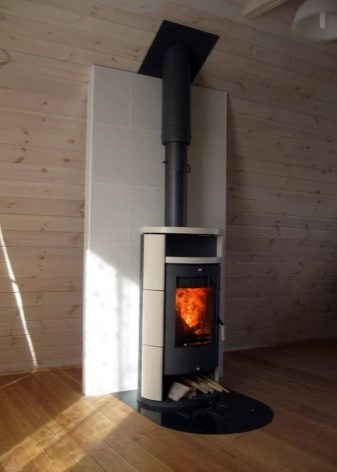Si l'espace le permet, un grand poêle à part entière est installé pour chauffer toute la maison, qui comprend des lits, des salles de cuisson et des tuyaux auxiliaires pour stocker le bois de chauffage et la vaisselle. L'option d'un poêle angulaire d'une taille plus modeste conviendra pour donner, mais sera facilement faire face au chauffage d'une pièce.