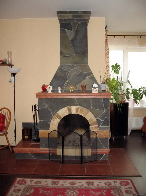Étant donné que la brique est très chaude, une conception sûre de carreaux de céramique en terre cuite ou en clinker est choisie pour le four. Pour donner un aspect luxueux, tuiles usagées ou Maiolica.Le four peut être enduit et recouvert d'une peinture résistante à la chaleur de la couleur de votre choix.