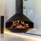 La particularité des cheminées suspendues dans leur solution technologique et moderne - la capacité de rotation. Ainsi, l’espace de la pièce a l’air très dynamique, le centre tourne dans n’importe quelle direction, modifiant et actualisant visuellement tout l’intérieur.