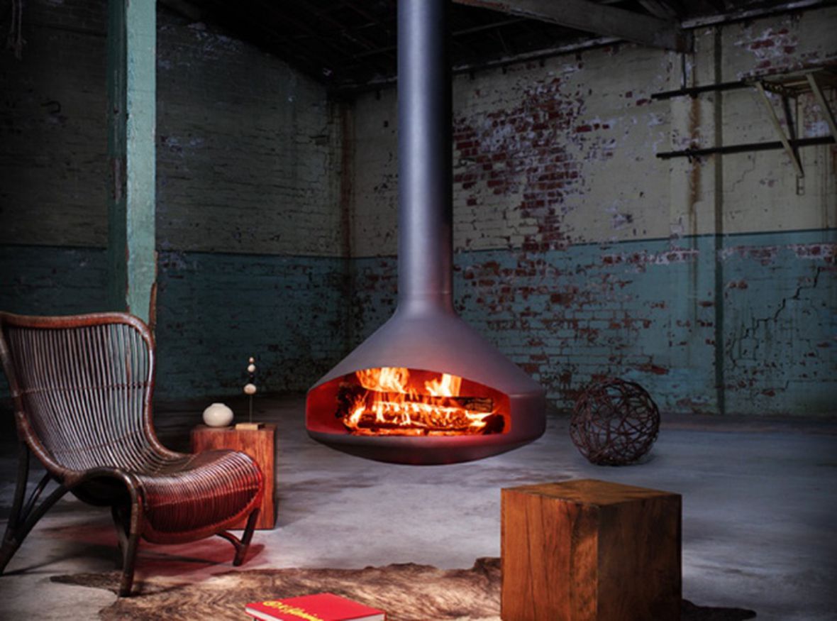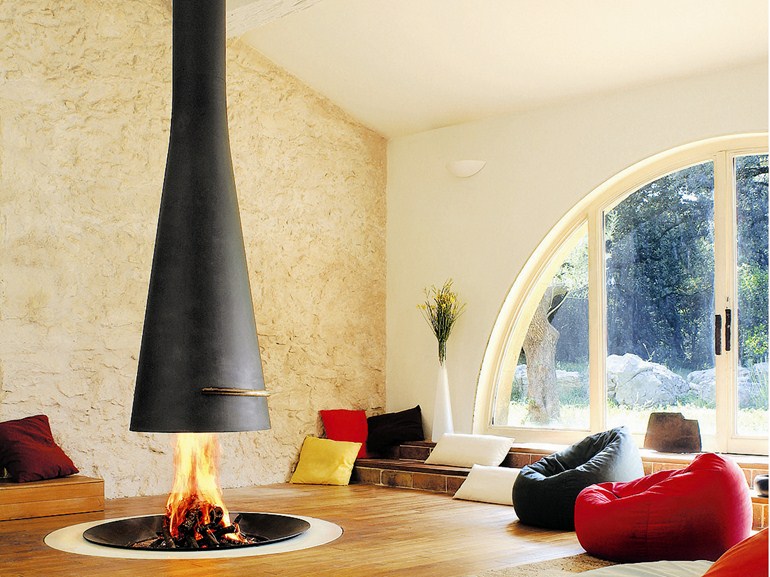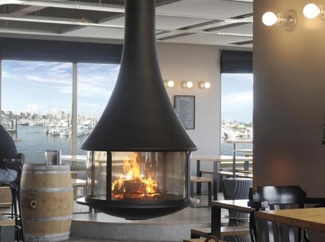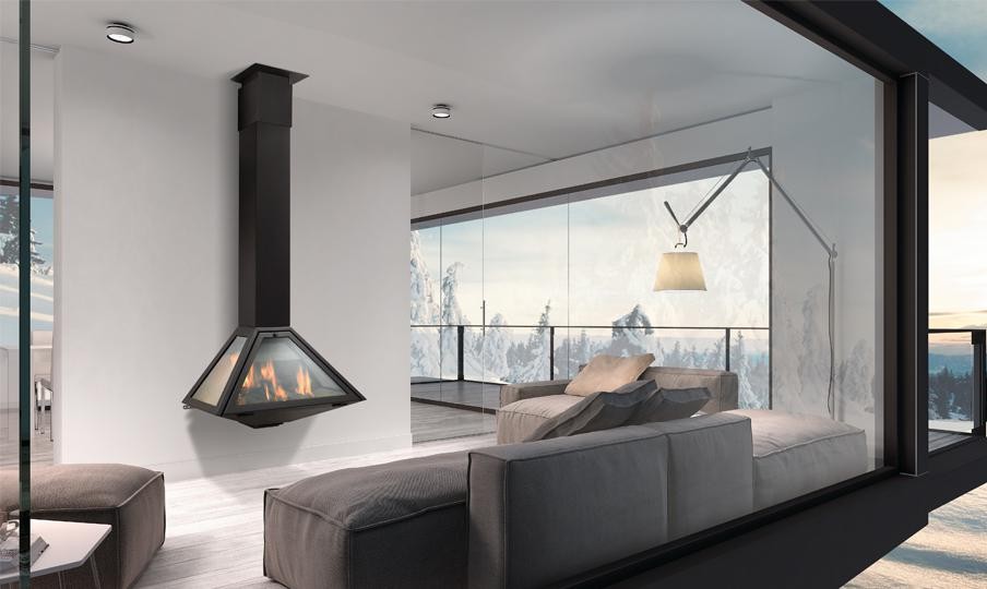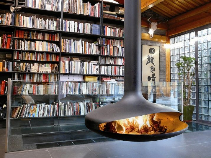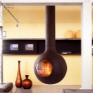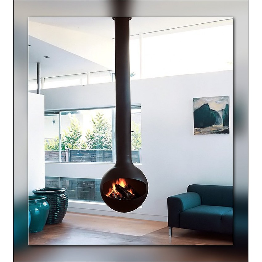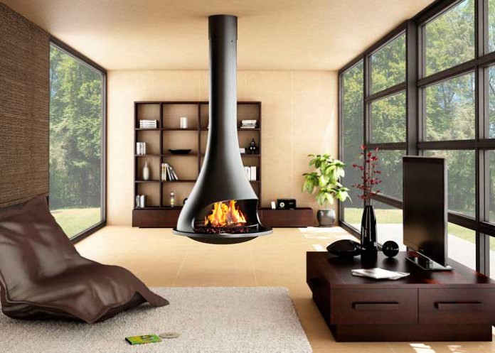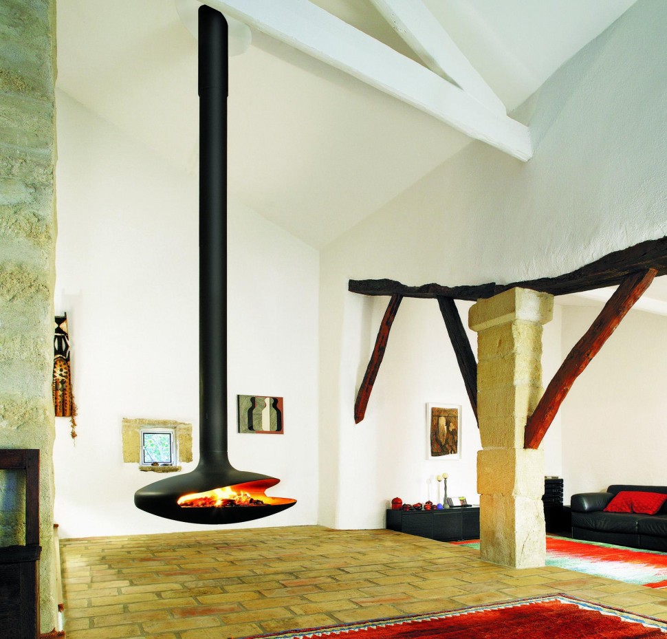 Pour la décoration moderne des appartements, les cheminées suspendues sont l'expression la plus frappante de la déconstruction. Avec eux, l’idée même de confort et de foyer familial est différente. Fondamentalement, parce que ces foyers sont fixés au plafond, bien qu'il existe des structures similaires et fixés au mur.