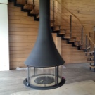 Cette construction s’appelait Antefocus et, un an plus tard, en 1968, une nouvelle cheminée, Gyrofocus, est apparue, mais son apparence, qui a atteint nos jours, reste la même. La cheminée suspendue est faite à la main, utilisée pour le travail de l'acier poli avec une finition noire mate et des soudures visibles.
