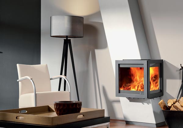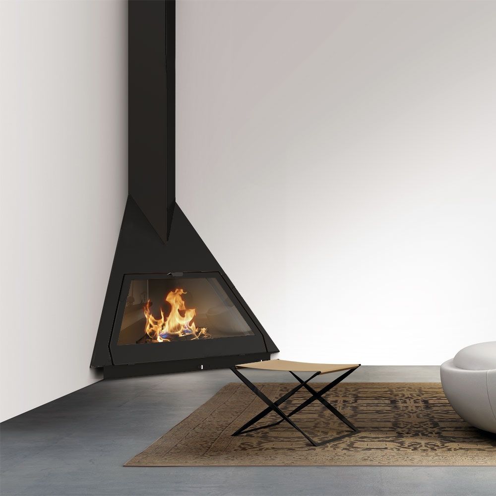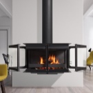 - FireObr avec un foyer en forme d'arbre, un tuyau de cheminée, avec un design universel et avec trois couleurs possibles. Dans ce cas, la forme du foyer est un tourbillon inversé et une porte vitrée de type panoramique. Sans décor, tout est extrêmement concis, mais aussi très stylé.