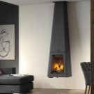 - Arion - type de cheminée suspendu, qui est installé dans le coin de la pièce. Attaché une telle conception - au mur, le four trapézoïdal, en verre résistant à la chaleur.