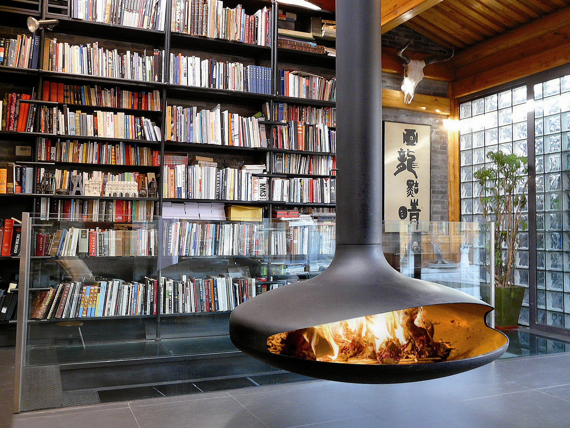 - Bubble est une structure suspendue ronde qui convient à la fois au centre de la pièce et près du mur. Option de foyer - bois ouvert.