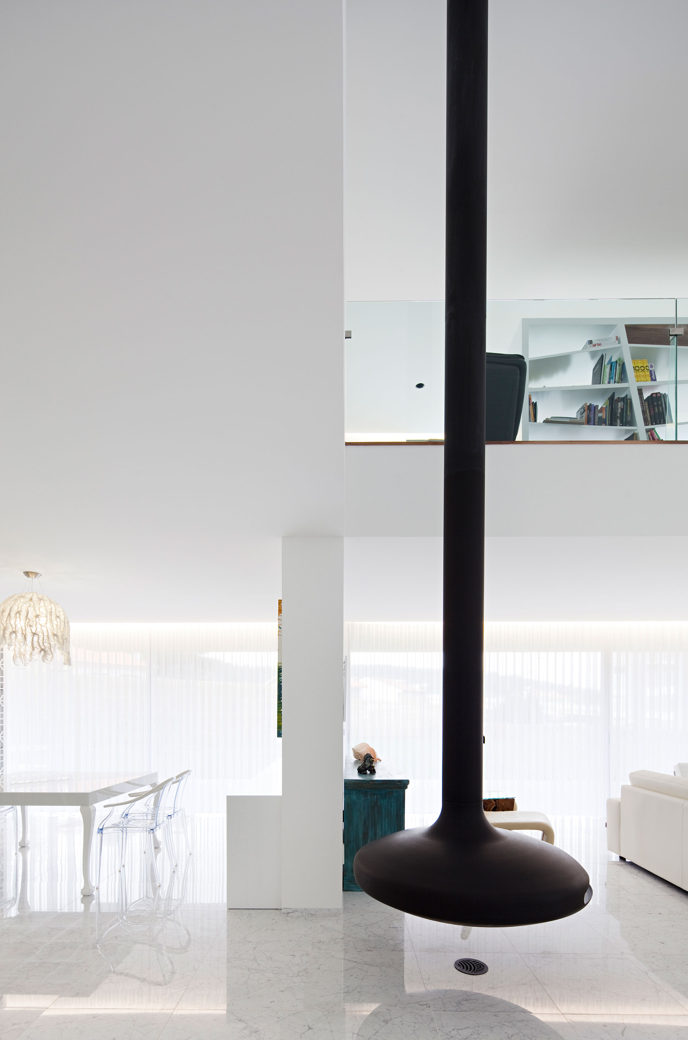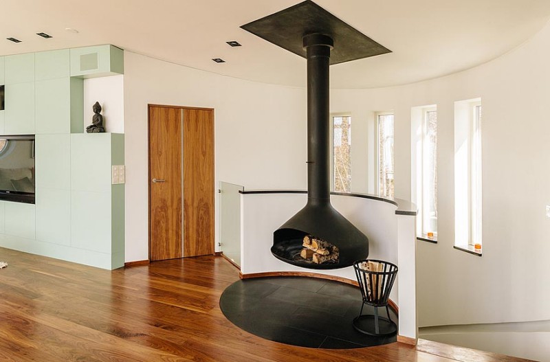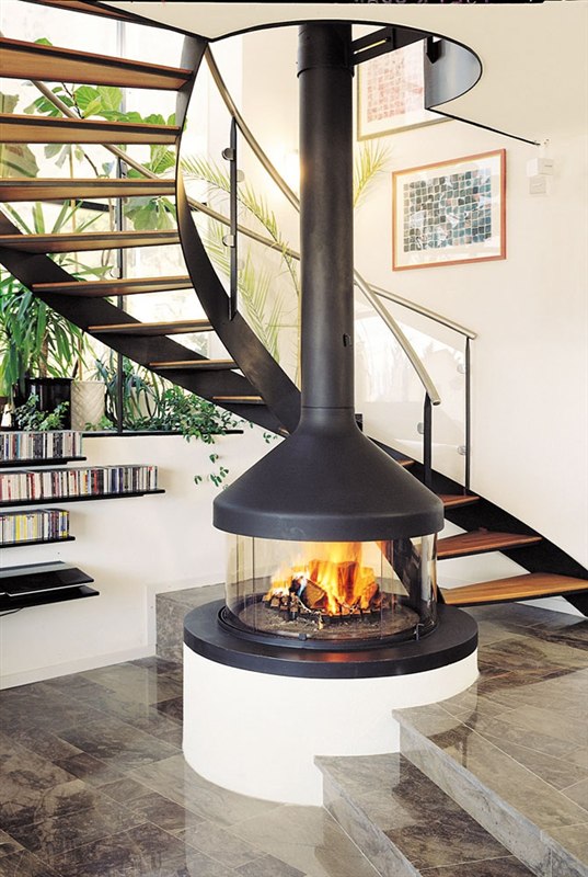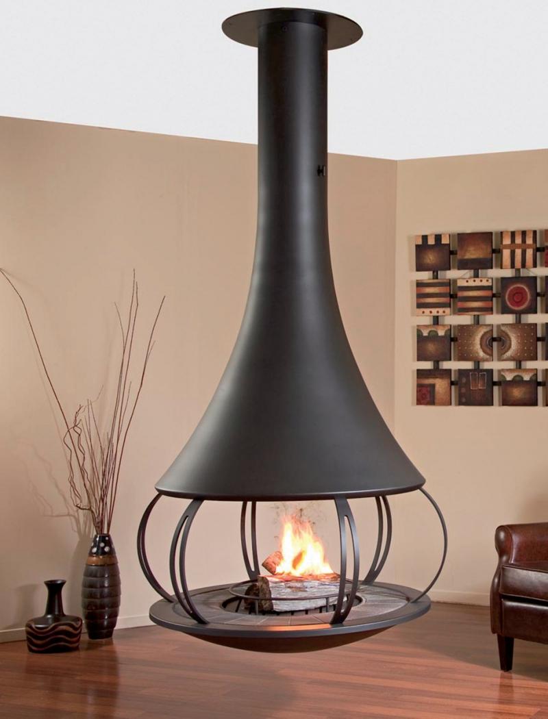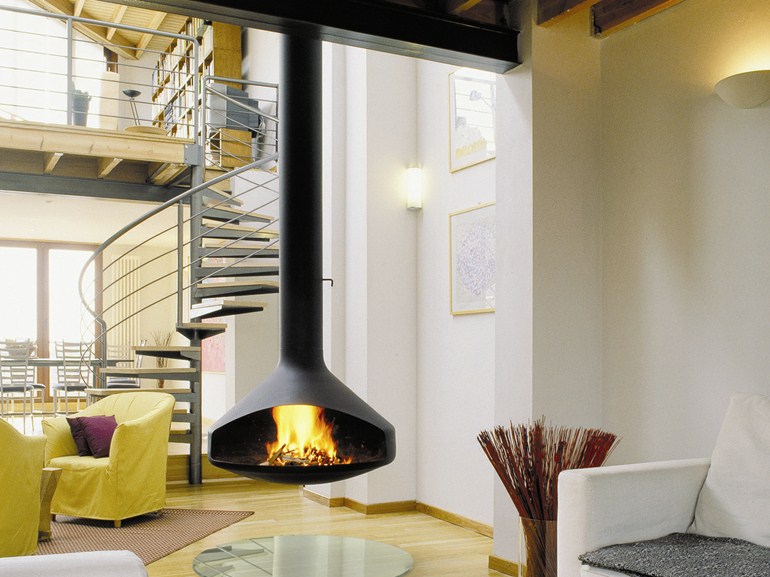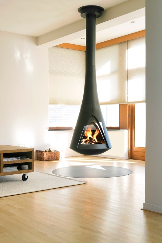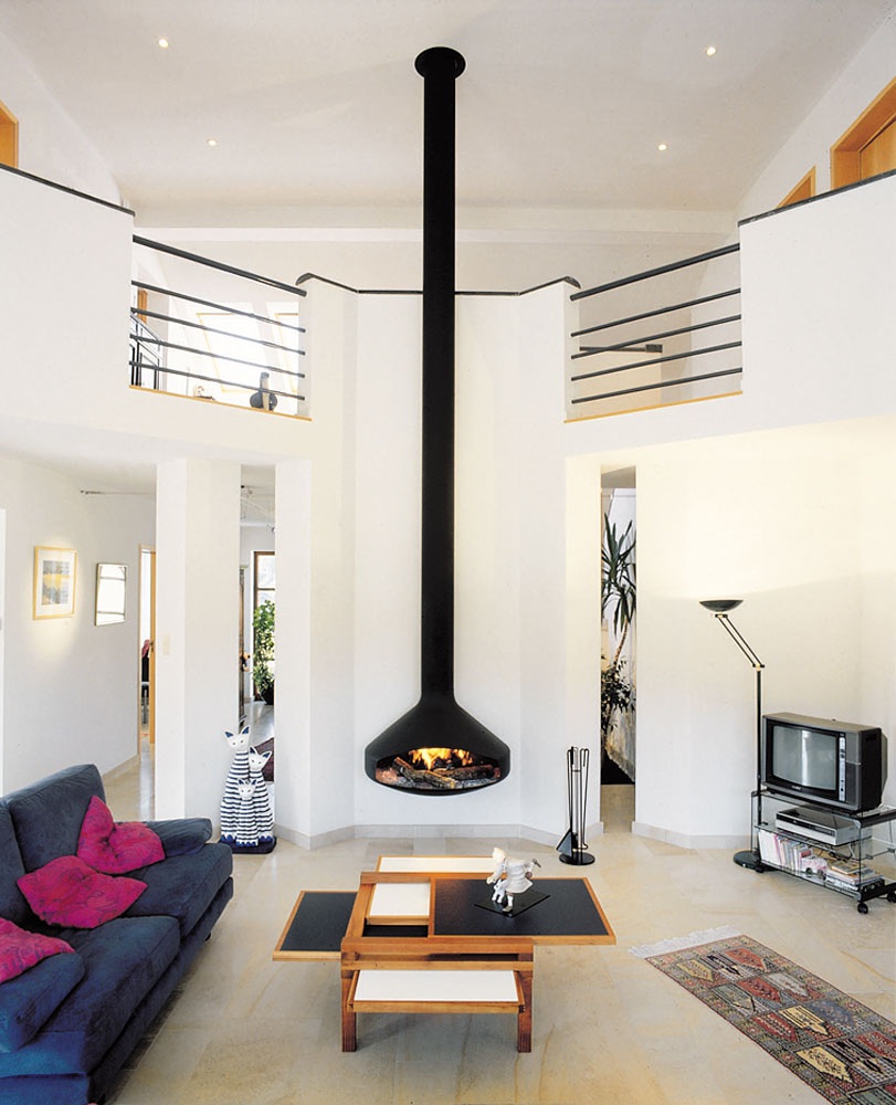 Il semblerait que les cheminées suspendues soient un défi pour les théories fonctionnelles et rationnelles, mais en réalité, elles s'avèrent très pratiques et ont un aspect très esthétique. Une telle structure «flottante» peut être trouvée dans n'importe quelle partie de la pièce avec des caractéristiques de support appropriées.Ces foyers de concepteur ne sont pas tellement pesés et conviennent donc parfaitement aux endroits où une charge spéciale sur le toit et les sols n'est pas recommandée.