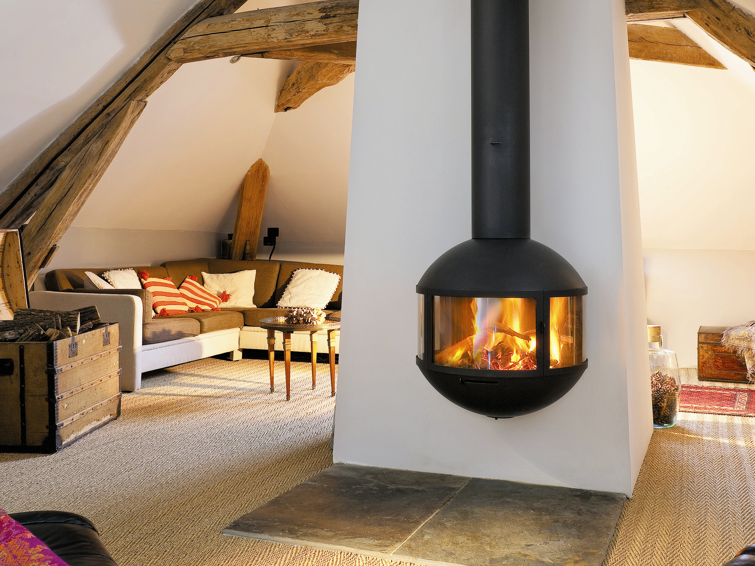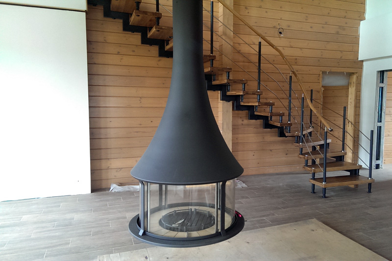 Un foyer suspendu prendra racine dans tout immeuble de grande hauteur, dans n'importe quel chalet, car le poids de la chambre de combustion est nettement inférieur à celui de la chambre de combustion d'un modèle de cheminée conventionnelle.La chambre de combustion en métal d'une cheminée suspendue n'est jamais garnie ni de pierre ni de céramique, et le poids maximal de l'ensemble de la structure ne dépasse jamais 50 kg. L'installation de la structure ne nécessite pas la mise en place d'une fondation spéciale, isolée des murs.