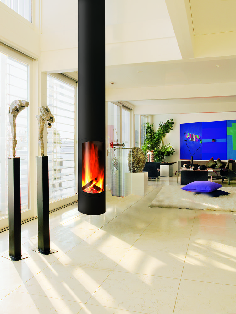 Gyrofocus, le premier d'une série de cheminées suspendues capables de pivoter à 360 degrés, a remporté de nombreuses expositions et a été présenté dans trois musées réputés. Et cela est dû non seulement à la perfection technique du design, le design du Gyrofocus est un délice et une surprise - un regard de feu à travers le strabisme d'acier.