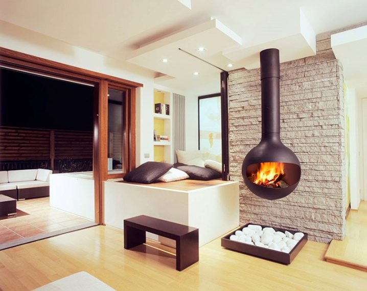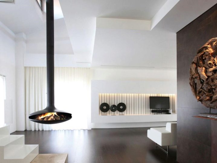 Fondamentalement, les foyers suspendus sont installés comme décoration très originale et inhabituelle de la pièce, car dans ce cas, nous ne parlons pas de chauffage complet fiable. Bien sûr, un tel foyer produit de la chaleur, mais il n’en reste pas beaucoup.