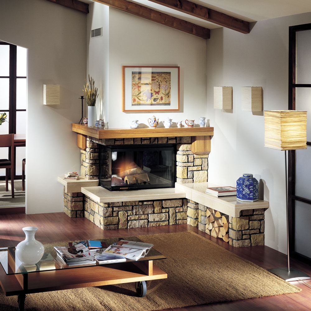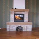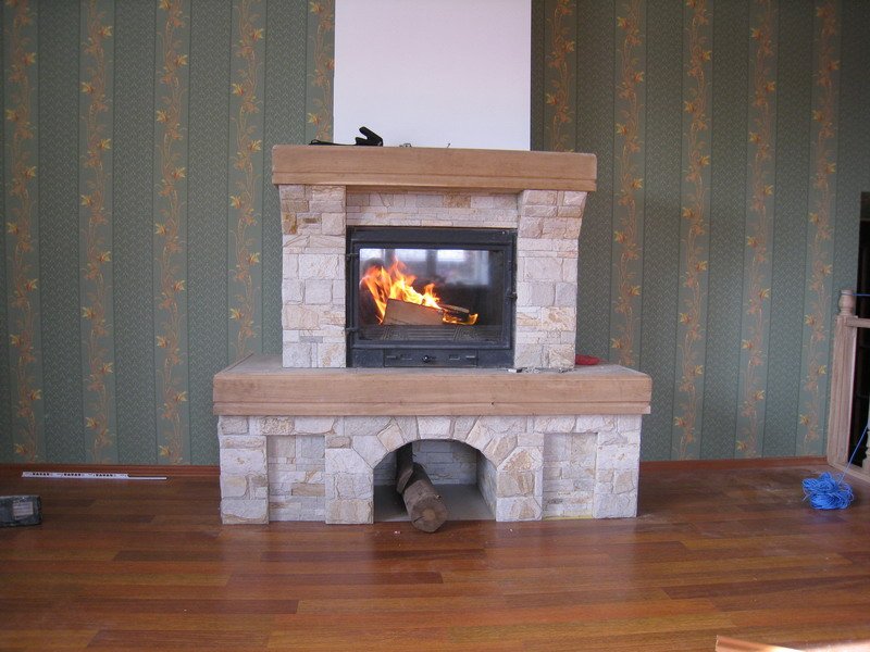- Pour les foyers à bois, le marbre, le grès, le granit, la brique, la pierre naturelle et artificielle ont été utilisés. Vous pouvez également utiliser des cloisons sèches et du bois, mais vous devez créer une protection thermique supplémentaire.
