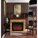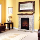 - Electrofireplace. Ce foyer est bon car il ne nécessite pas l'installation d'un système de ventilation spécial, vous n'avez pas besoin d'acheter de matériel pour la chambre de combustion - il fonctionne à partir d'une prise de courant ordinaire. Il peut être facilement installé de vos propres mains; l'installation (et le démontage) ne nécessite aucune connaissance ni compétence particulière. L'imitation d'une flamme est atteinte aux dépens de l'écran 3D intégré ou du générateur de vapeur avec illumination de dessous. N'oubliez pas qu'en plus du feu décoratif, le feu électrique peut également remplir une fonction de chauffage: la surface de chauffage d'un tel foyer est d'environ 20 mètres carrés.