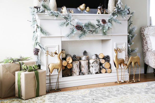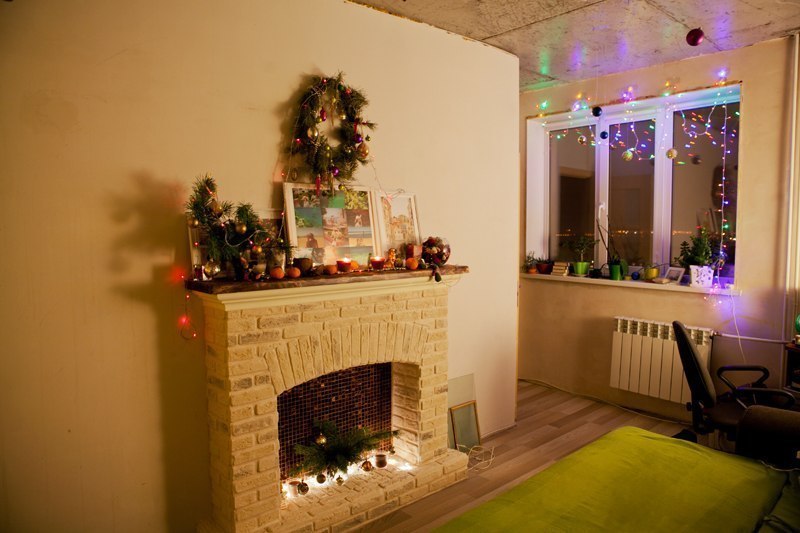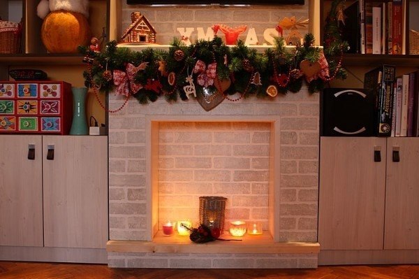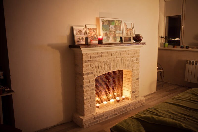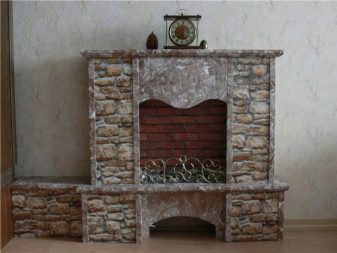 - Cheminée décorative (fausse). Cette option est la meilleure solution pour ceux qui veulent voir une cheminée dans leurs intérieurs, mais pour une raison quelconque ne vont pas dépenser beaucoup d’argent dessus. Faux foyer peut être facilement assemblé par vous-même. En fait, ce sera juste un portail de cheminée vide, en plus décoré avec une imitation de flamme, braises, bois de chauffage, etc. Presque n'importe quel matériau conviendra à sa construction - si vous le souhaitez, il peut être fabriqué même à partir de boîtes inutiles!