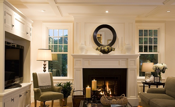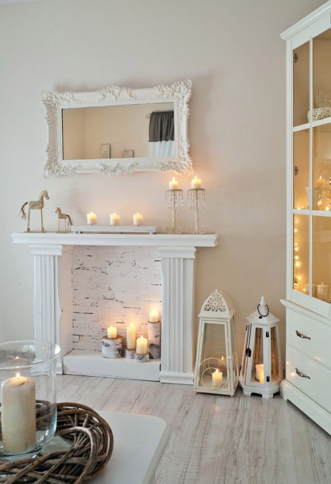 Le plan ci-dessus pour l'installation étape par étape du portail de la cheminée électrique convient également à la fabrication d'une fausse cheminée, mais il nécessitera une décoration supplémentaire sous la forme d'un miroir sur le mur du fond, une imitation de feu, du bois de chauffage magnifiquement posé dans le foyer, etc. Votre imagination sera la meilleure assistante à ce stade de la finition.