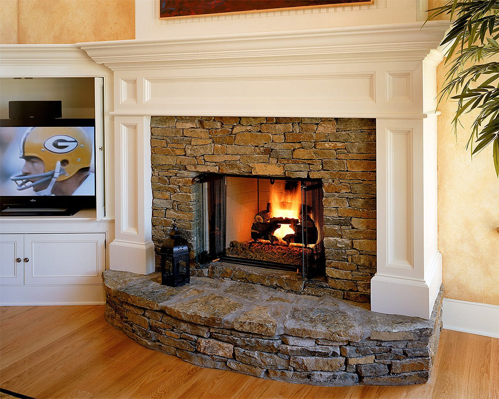 - D'une pierre naturelle. Le matériau le plus cher et, peut-être, le plus beau pour la fabrication du portail de la cheminée. En raison de la structure hétérogène de la pierre, chaque portail, assemblé à partir de celle-ci, sera unique. Le processus de fabrication prend beaucoup de temps, mais le portail en pierre vous enchantera pendant de nombreuses années et donnera à l'intérieur un aspect riche et élégant.