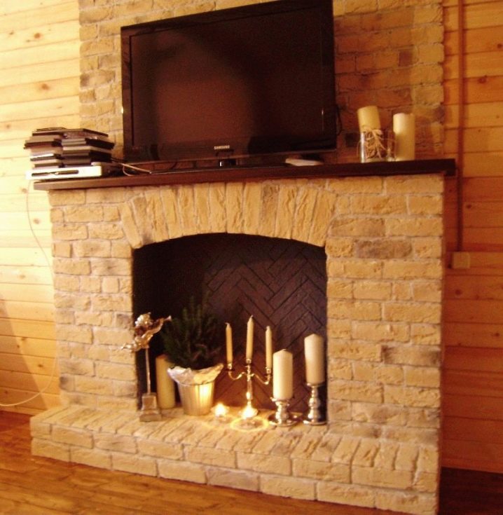Une cheminée décorative faite maison est généralement carrelée avec un carreau de colle spéciale. D'autres options de parement sont possibles - brique ou pierre artificielle, film. Dans la chambre de combustion, placez du bois de chauffage décoratif avec des lampes à LED, qui raviront longtemps leur éclat. Vous pouvez acheter du bois de chauffage décoratif avec des LED dans un magasin spécialisé de la ville.