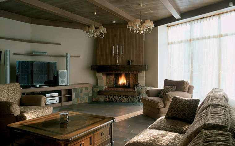 - Cheminées à bois installé dans des chalets ou des maisons de campagne avec des chambres de grande surface. Selon toutes les règles, il est important d’organiser la cheminée de sorte que toute la fumée soit évacuée à l’extérieur. Après tout, la fumée dans la pièce est dangereuse non seulement pour la santé, mais aussi pour la vie des gens.