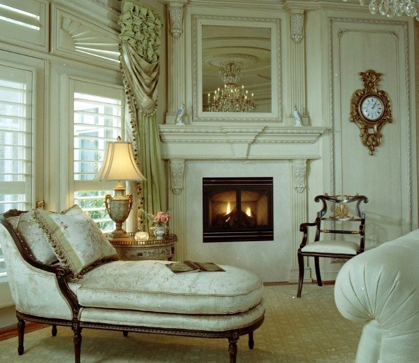 - Baroque, Rococo et Empire adapté aux grandes et spacieuses pièces. Les cheminées sont conçues en fonction des caractéristiques propres à ces zones: présence de colonnes, stuc élaboré, prédominance de l’or et de l’argent dans les couleurs des matériaux de finition. Dans le même temps, ils peuvent être complétés par divers éléments de décor.