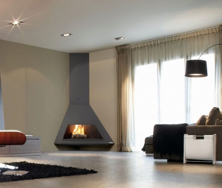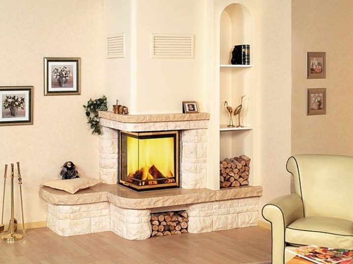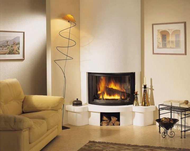 Récemment, les foyers d'angle sont devenus très populaires. Ce type est le plus avantageux d’un point de vue pratique car il chauffe simultanément deux murs dans un appartement.De plus, la cheminée d'angle à l'intérieur du salon est plus élégante et souligne le sens du goût de l'hôtesse, la gardienne de la maison.