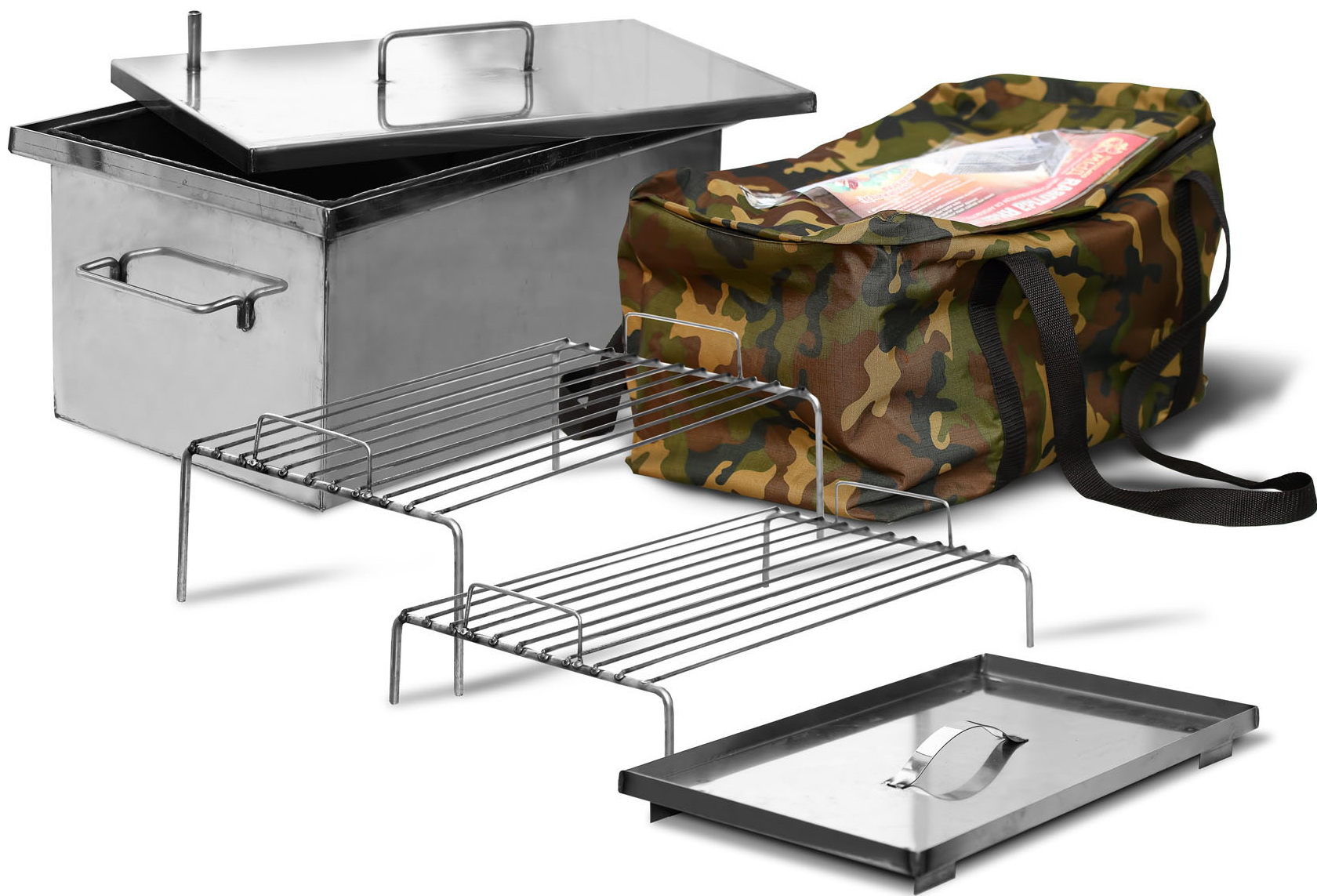 Si vous ne prévoyez pas vous lancer dans des produits pour fumer en permanence, une version compacte portable du fumoir vous conviendra. Cela prend pas mal d’espace, vous pouvez le placer dans n’importe quel endroit ou l’emporter avec vous dans la nature. Malgré sa taille miniature, ce type de fumoir fait son travail aussi bien qu'un compagnon stationnaire. Le seul point négatif est l’impossibilité de préparer des produits en grande quantité à la fois. Mais pour une petite famille, un tel fumoir serait très approprié.