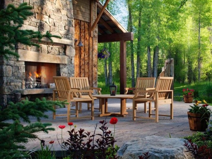 Le foyer extérieur fait partie intégrante de la conception paysagère de la datcha. Vous pouvez créer un véritable patio dans lequel vous pourrez passer du temps par n'importe quel temps et à toute heure de la journée.