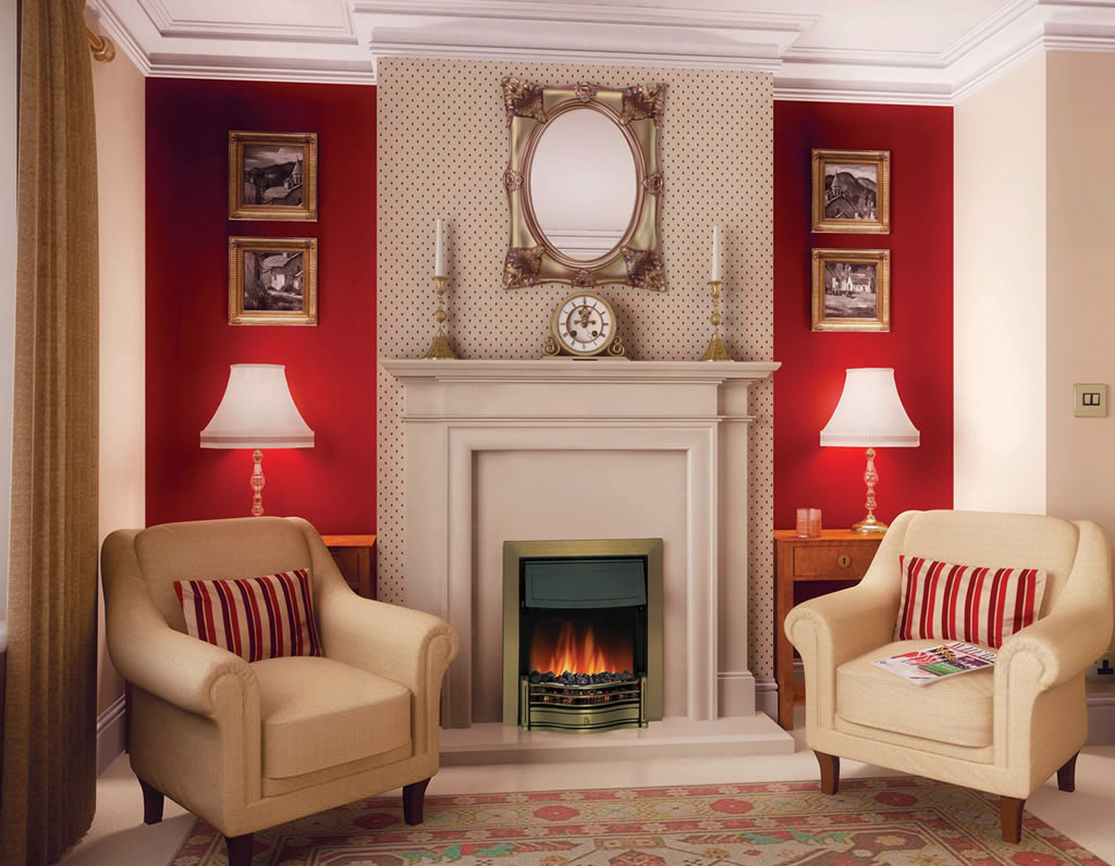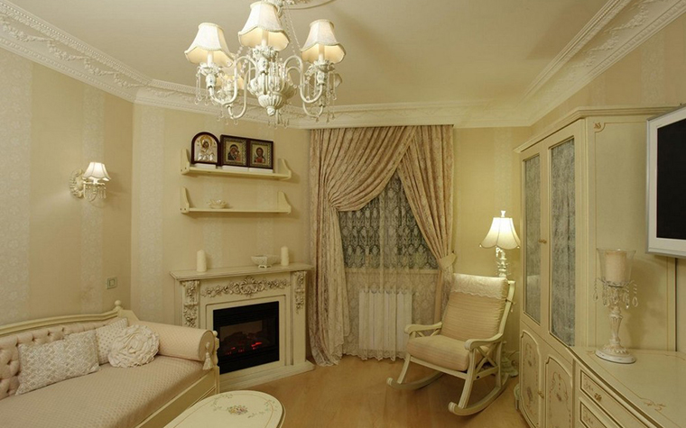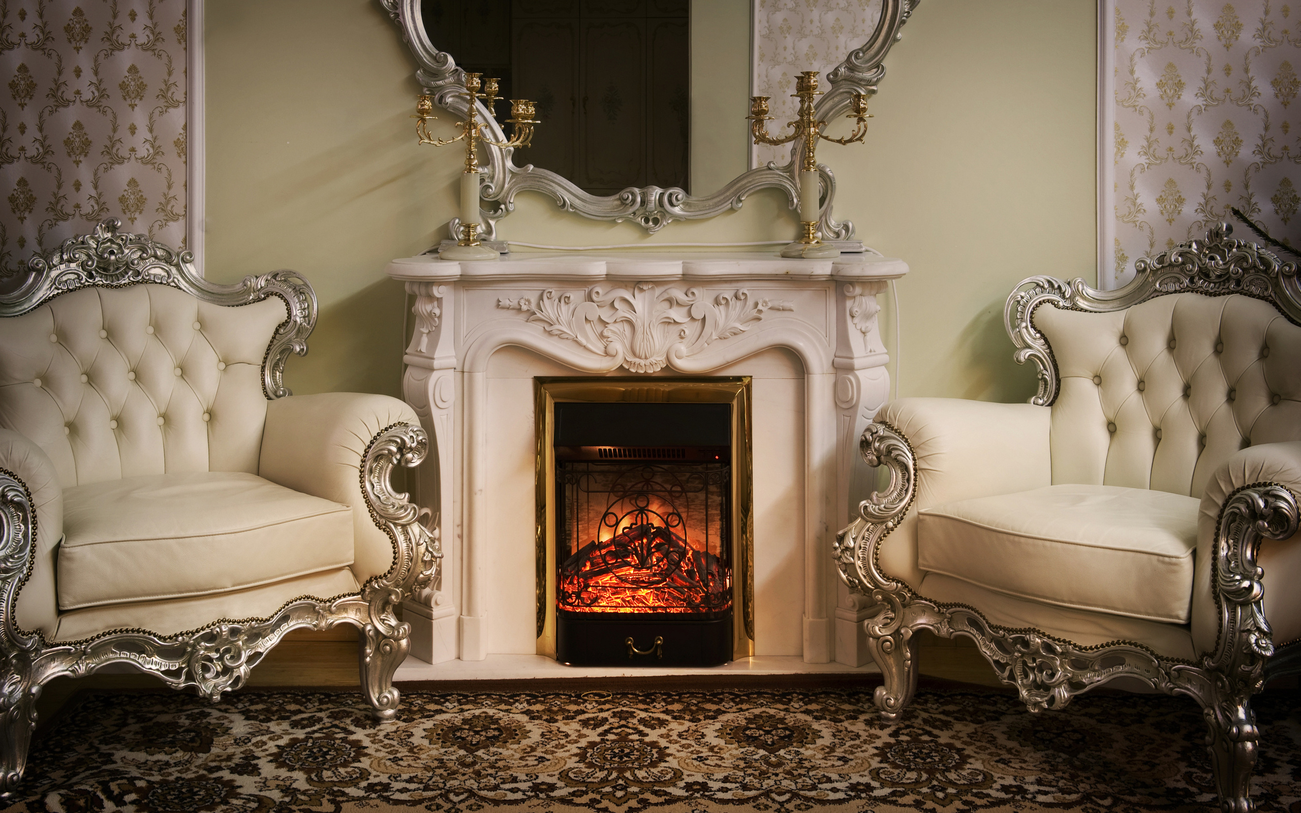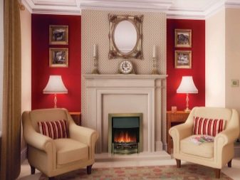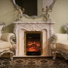 Une énorme quantité de décor à volants met en évidence la fonction purement esthétique du foyer plutôt que ses propriétés de chauffage. Par conséquent, il est souvent approprié d'installer un foyer électrique dans des appartements conçus dans le style baroque et de style empire. Il fera lui-même partie du décor luxueux de la pièce.